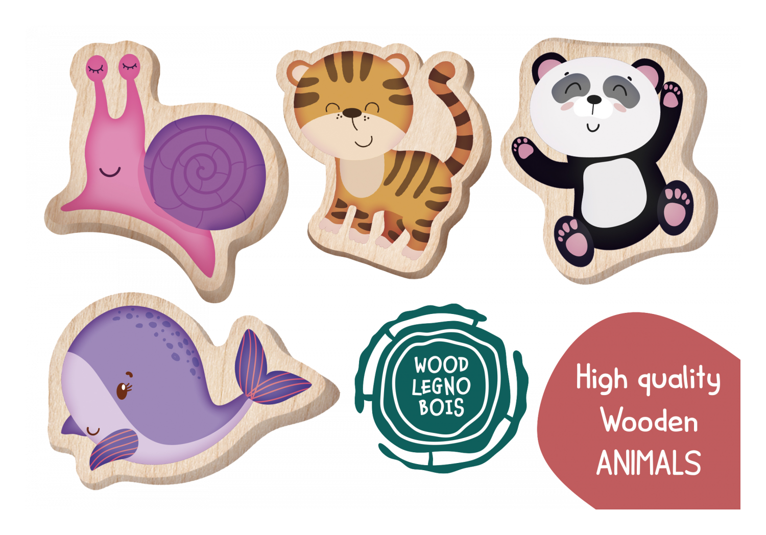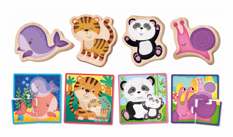 Inhalt: 16 Puzzle-Teile + 4 Tierkinder aus hochwertigem Holz, Anleitung.