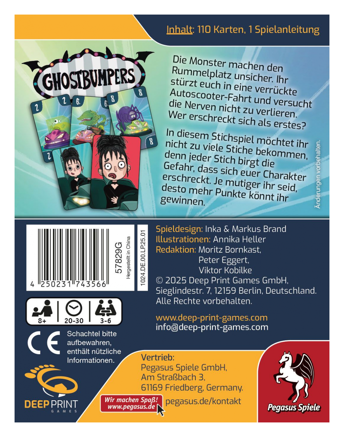 Nachdem die Spielenden ihre Hand erhalten haben, schätzen sie ein, wie viele Stiche sie vermutlich bekommen und setzen ihre Schreck-Karte entsprechend ein. Je besser sie voraussagen können, desto höher die Chancen auf den Sieg! Doch es gibt einige Sonderregeln, die dieses Stichspiel zu einem wilden Ritt machen, bei dem es auch mal hitzig am Tisch werden kann!