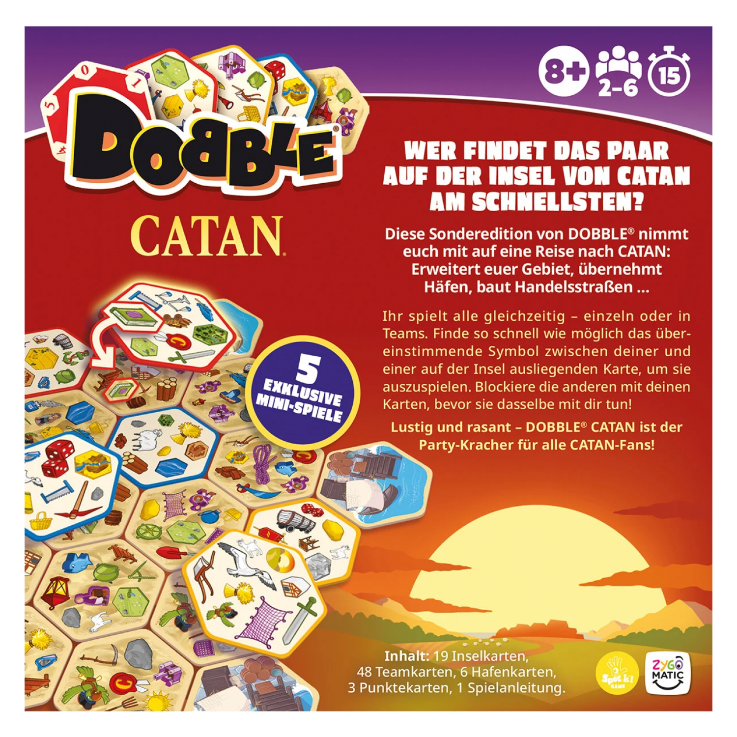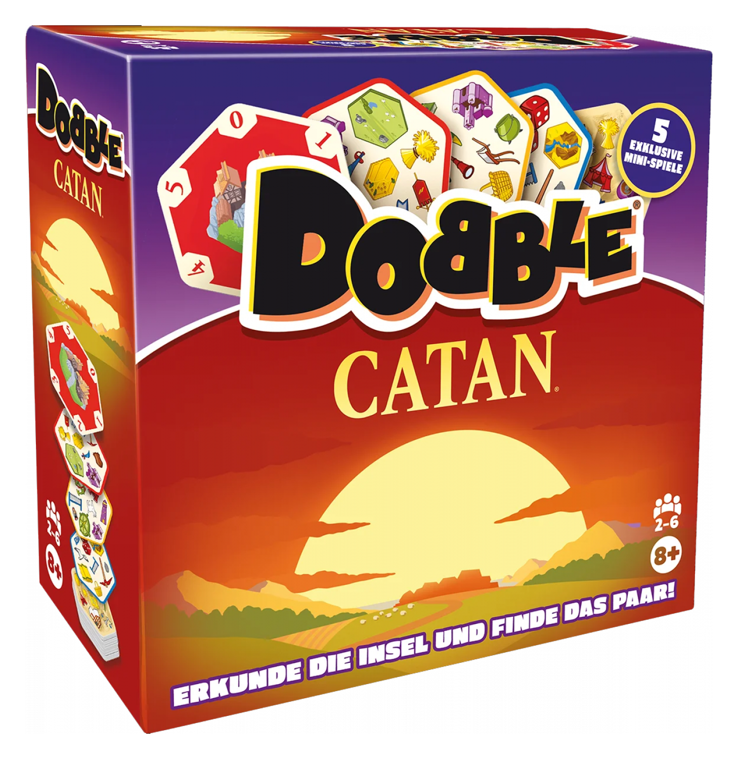 Diese Sonderedition von Dobble enthält fünf exklusive Mini-Spiele und nimmt euch mit auf eine Reise nach CATAN:
