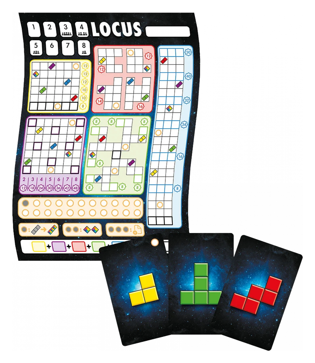 Im strategischen Familienspiel Locus ist es dein Ziel, möglichst viele Punkte auf deinem Wertungsbogen zu sammeln.