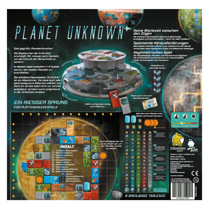 Die drehbare Raumstation (S.U.S.A.N.) ist ein Alleskönner: Sie lässt alle gleichzeitig eure Plättchen wählen und dank ihr ist das Spiel nicht nur schnell aufgebaut, sondern auch aufgeräumt in der Schachtel verstaut.