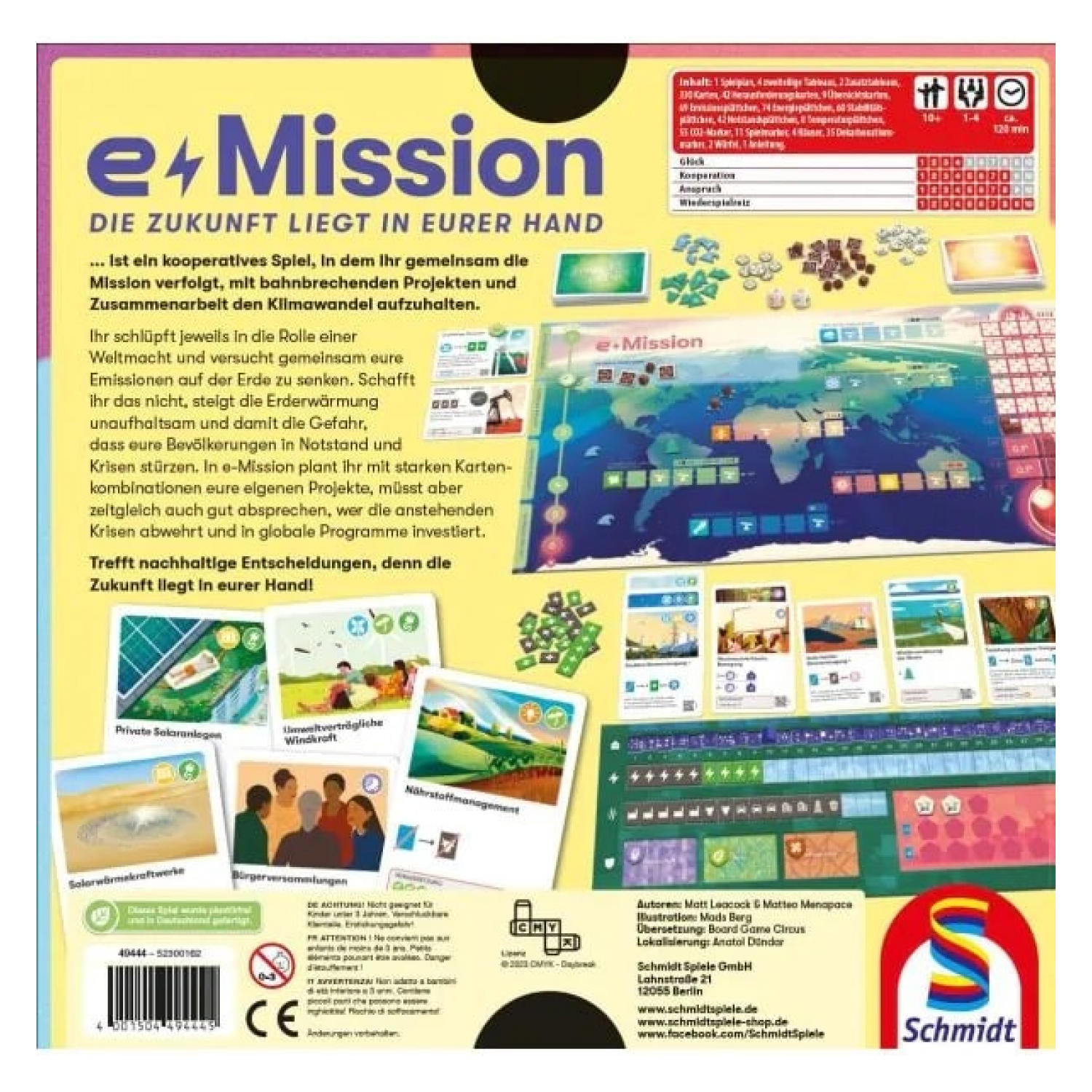 Bei diesem kooperativen Kennerspiel schlüpfen die Spieler in die Rolle von Großnationen und versuchen gemeinsam das große Ziel zu schaffen: Die weltweiten Emissionen auf Null zu reduzieren, um damit die Erderwärmung zu stoppen! Ein hochaktuelles Thema, brillant umgesetzt mit einem eingängigen Kartenmechanismus und sehr starkem Bezug zur Realität. Das Spiel wird ganz ohne Kunststoff und CO2-Neutral in Deutschland produziert.