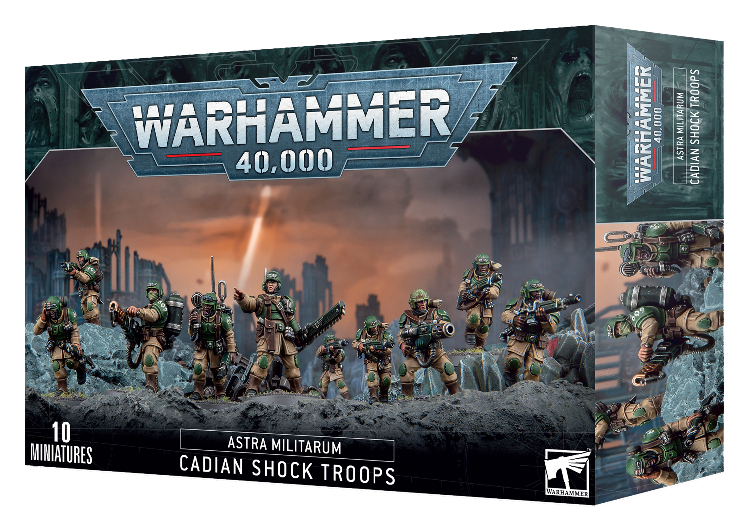 Als geborene Soldaten werden die Stoßtruppen Cadias von dem Moment an auf das Soldatenleben vorbereitet, in dem sie ein Gewehr halten können. Lange Jahr rigoroser Ausbildung haben sie zu erfahrenen Scharfschützen gemacht, die gleichermaßen hartnäckig verteidigen, wie sie eifrig Sturmangriffe führen. Die Cadianischen Stoßtruppen werden von vielen als Ideal der imperialen Soldaten angesehen – und zahllose Regimenter nach ihrem Vorbild ausgehoben.