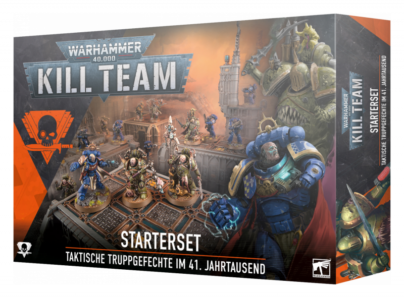 In der Finsternis der fernen Zukunft fliegen Explosivgeschosse durch die Luft, heulen Kettenschwerter hungrig auf und gepanzerte Füße hämmern unaufhörlich gegen den gebrochenen Boden. Hier, in diesem Moment, wird eine Schlacht von den mutigen Taten einer Handvoll Kämpfer entschieden. Hast du das Zeug dazu, sie in die Schlacht und in den Sieg zu führen? Kill Team ist ein actiongeladenes Tabletop-Spiel, in dem intensive Truppgefechte im 41. Jahrtausend ausgetragen werden – dem Hintergrund von Warhammer 40.000.