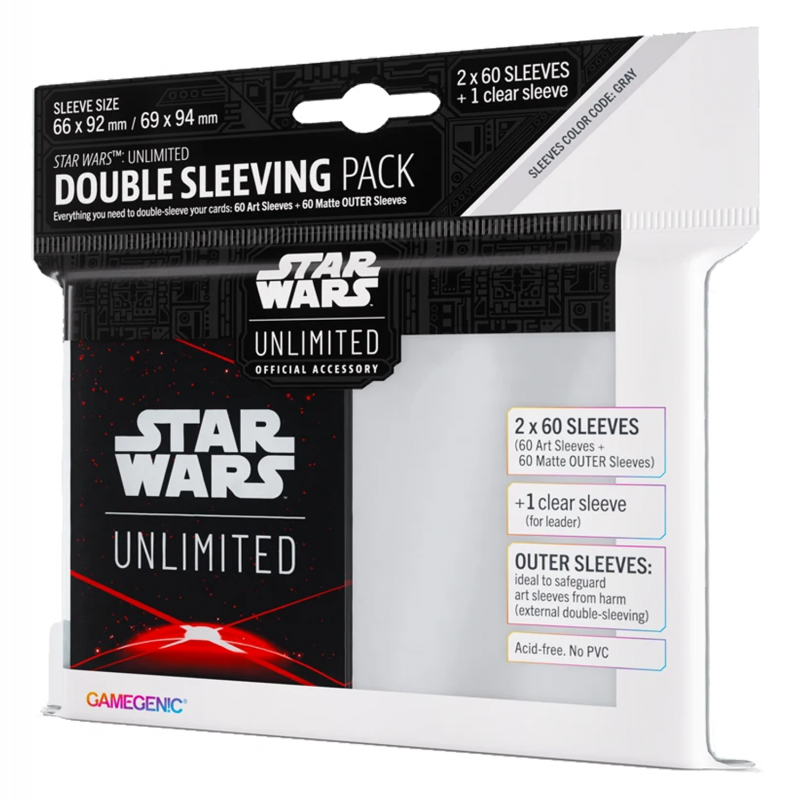 Das Star Wars™: Unlimited Double Sleeving Pack enthält sowohl die fantastischen Master Art Sleeves als auch die Matte Outer Sleeves zum Schutz eines kompletten Decks mit bis zu 60 Spielkarten in Standardgröße. Die Master Art Sleeves bieten ein unglaublich gutes Gefühl beim Mischen.