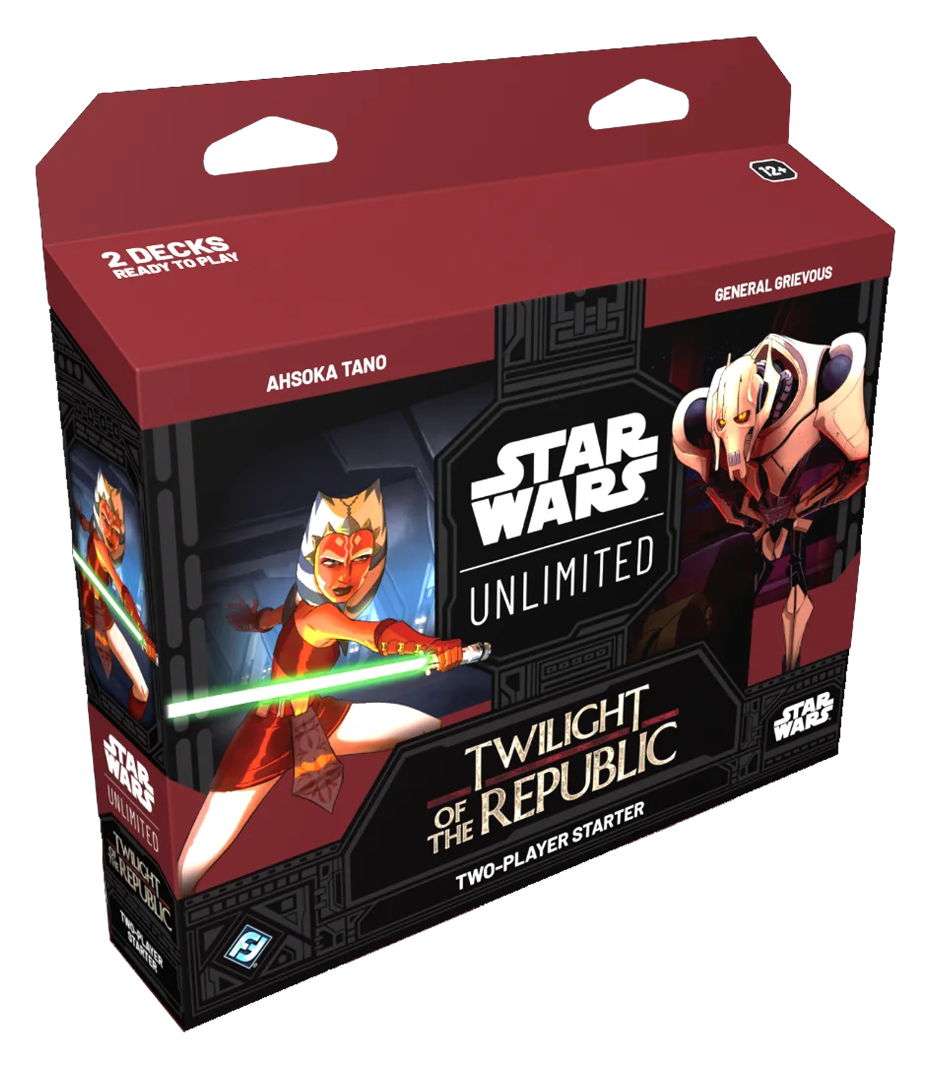 Enter a galaxy of endless possibilities in Star Wars™: Unlimited! In this fast-paced, easy-to-learn trading card game, you and your opponent face off in exciting head-to-head battles full of iconic Star Wars characters. In the Two-Player Starter for the game’s third set, Twilight of the Republic, you will find two fully-built, ready-to-play decks for you and a friend to dive in and start learning the game. Lead a coordinated attack as Ahsoka Tano or command an entire droid army as General Grievous.