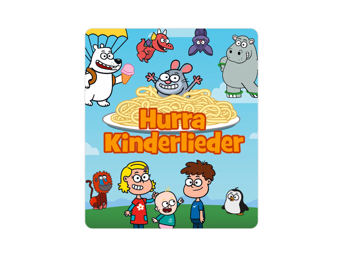 Die Songs des erfolgreichen YouTube-Kanals “Hurra Kinderlieder” begeistern seit Jahren schon Millionen von Kindern, und das schon weltweit und in verschiedensten Sprachen! Die lustigen Lieder über die Geschwister Frida, Karlchen und Luka und ihre Familie, das Zahnmonster Hacki Backi oder Tiere wie die Baby Giraffe, Drache Funki, das tanzende Nilpferd und viele weitere tierisch spaßige Freunde machen der ganzen Familie Freude beim Mitsingen, Lachen und Tanzen. „Hurra Kinderlieder“ präsentiert Kinderhits auf der Höhe der Zeit, in flottem, eingängigen wie abwechslungsreichen Popsound und mit zeitlosem Charme und Humor. Die Lieder stammen allesamt vom in Hamburg lebenden Musiker, Produzenten und Kinderhörspiel-Autor Kai Hohage. Die 25 besten Hurra Kinderlieder wurden exklusiv für diesen Tonie