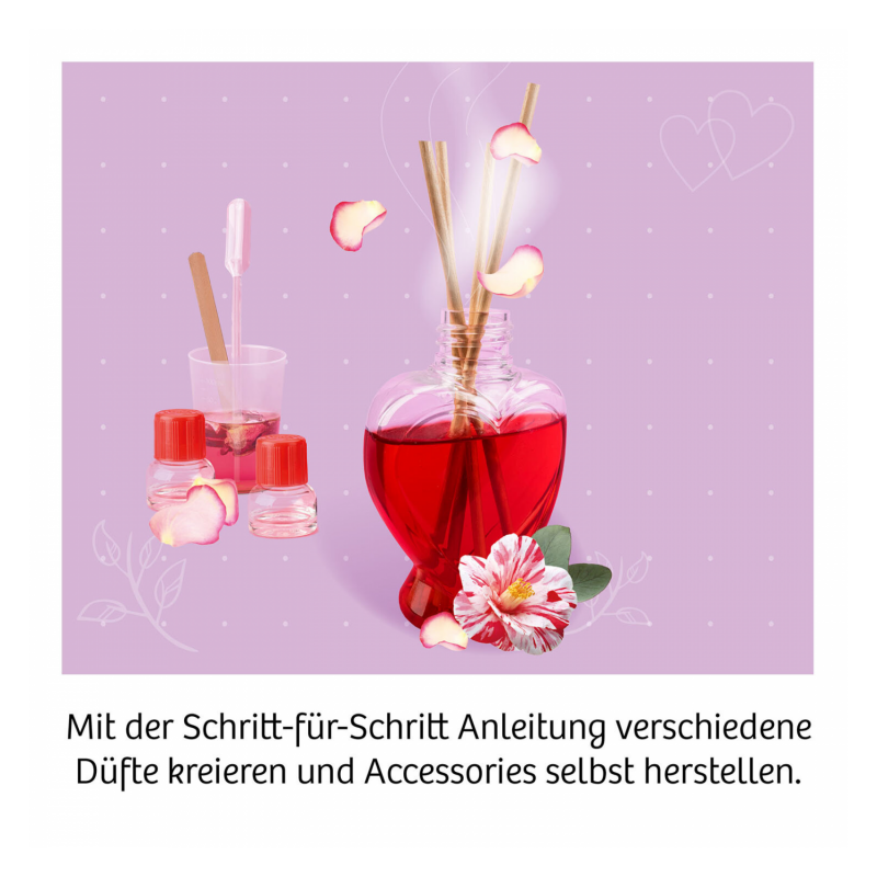 Mit diesem einzigartigen Experimentierkasten können Kinder ab acht Jahren ihre ganz eigenen Raumdüfte kreieren und dabei in die spannende Welt der Parfüm-Herstellung eintauchen. Dank kreativer Zusatzexperimente, Duft-Spielen und DIY-Projekten lässt sich außerdem die Welt des Riechens ganz neu entdecken und tolle Dekorationen fürs eigene Kinderzimmer herstellen. Mit diesem Set sind dem Ausprobieren keine Grenzen gesetzt: es enthält neben einer Raumduftbasis, flüssigem Glycerin und einem hübschen Deko-Flakon auch Bastelartikel sowie Experimentierzubehör wie Messbecher, Trichter, Pipetten und Spatel. Mit nur wenigen haushaltsüblichen Zusatzmaterialien lassen sich außerdem viele weitere Duft-Projekte realisieren.